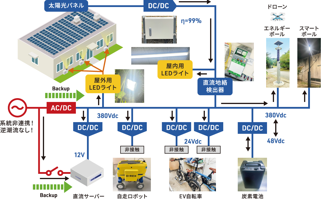 - 直流給電により電力ロスを究極に削減