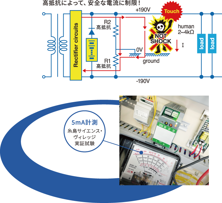 安全な地絡電流に制限することが可能です。