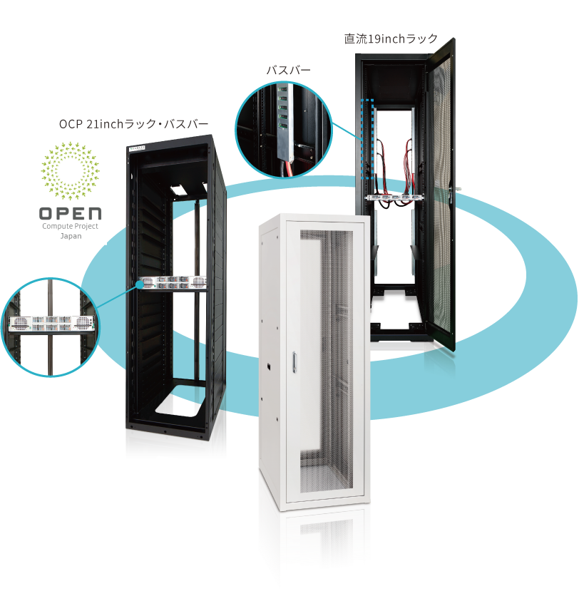 EIA規格の19Inchサーバーラック、OCPラックなどのラック単体の販売から、バスバー、集中電源、直流サーバの実装をオールインワンで構築して出荷するところまでお手伝いをさせて頂きます。また、屋外仕様、塩害対策、熱対策などの盤やコンテナも安価に1台から対応させて頂きます。